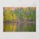 Uma fêmea solitária de Moose, laca arenosa em movimento no Parque Estadual de Baxter, Maine, com as folhas do outono refletidas na água.