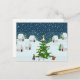 Cartão Postal Aldeia de neve de Natal com árvore de natal e ani