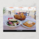 Salada grega, queijo frito com mel e pão