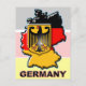 Um país da Europa Central do Norte. Neste design, o Casaco de Armas alemão, sobrepõe-se um emblema oficial ao mapa do país com a bandeira.