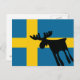 Cartão Postal Älg / Moose med Svenska flaggan