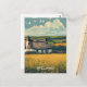 Um cartão postal, ao estilo vintage, da Irlanda, com tons mudos e charme nostálgico, mostra costas robustas, colinas verdes rolantes e casacos tradicionais de pedra, capturando a beleza eterno do ocidente irlandês.