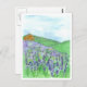 Um cartão postal bonito com uma cabana silenciosa num campo de flores lavandas com abelhas melíferas a zumbir num dia de verão pintado em aquarela.