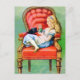 Cartão Postal Alice e seu gato Dinah na cadeira do Veludo Vermel