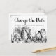 Alice no Casamento das Maravilhas Muda o Cartão-postal. Atualize seus amigos e família com as informações sobre sua nova data ou mudança de data para seu casamento. Personalize completamente todas as informações e fotos.