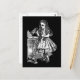 Uma ilustração vintage de Alice e a garrafa que está rotulada como "beba-me".