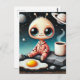 Cartão Postal Alienígena de bebê com café e ovos
