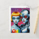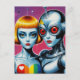 Cartão Postal Alienígena e robô apaixonados no arco-íris
