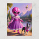 Cartão Postal Alienígena rosa caminhando com seu terrier de Bost