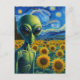 Cartão Postal Alienígena verde num campo girassol Faux Van Gogh