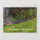 Um jacaré americano gosta de algum tempo nas pântanas e pântanos da Flórida. O texto diz, "Saudações da Flórida", mas pode ser alterado e personalizado para ajustado de suas necessidades!