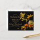 Uma elegante pintura de vida morta cai folhas ouro e verde, nuvens em laranja e tons de verde, loucos e seu convite em uma pálida e pálida sombra de laranja. O fundo é preto. Nosso espaço diz o almoço de Ação de Graças, mas ele pode ser facilmente editado para almoçar ou jantar. O texto cor de laranja esmaecido está em fontes contrastantes interessantes. A parte traseira é um design de cartão postal típico, com seu endereço de retorno e mensagem pessoal editados para as informações de espaço reservado. Basta apertar "Personalizar" para começar.