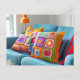 Cartão Postal Almofadas Crochet Granny Square em um Sofá