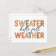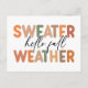 Este trabalho de arte de queda vibrante captura perfeitamente a aconchegante essência da estação com sua tipografia divertida e paleta de cores quentes. A design apresenta a frase ousada "Clima Suéter" em letras grandes e achatadas que se alternam em tons de laranja, bege, verde e marrom, evocando a mudança de cores das folhas do outono. A frase "olá cair" está enterrada, escrita em uma escrita fluente e cursiva que adiciona um toque de elegância e calor à design.