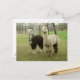 Uma alpaca preta e branca (smoking) e uma alpaca de cinza se posam juntas neste adorável cartão postal