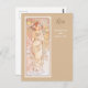 Um cartão postal de arte com a ilustração vintage de Alphonse Mucha, da série Flor, Rosa (1898), que foi restaurado digitalmente e melhorado. Uma mulher de vestido noturno cercada por rosas rosa e amarelas.