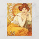 Cartão postal Alphonse Mucha Topaz. Pintura a óleo na canvas. O artista checo Alphonse Mucha pintou com frequência alegorias, e Topaz é de uma série representando pedras-de-gema como mulheres bonitas. A pintura apresenta uma jovem linda e jovem vestindo um vestido topaz profundo que fica parado de um fundo joalhado ornamentado. Um presente de excelente para fãs de Mucha, Art Nouveau e impressões de safra.