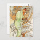 Cartão postal da nota Alphonse Mucha Winter. Pintura a óleo na canvas desde 1896. O pintor checo Alphonse Mucha retratou representações alegóricas das quatro estações várias vezes ao longo de sua carreira. Esta versão do Winter é de uma série terminada em 1896 e apresenta uma bonito jovem vestida em um manto azul-ártico com um capuz cobrindo seu cabelo castanho-claro. Ela areia debaixo de uma neve coberta de árvores abrigando um pássaro em suas mãos. Três outros pequenos pássaros sentam nos galhos quando uma tempestade de inverno sobe. Um belo presente para fãs de Mucha, art nouveau e arte vintage.