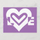 Um design de logotipo gráfico, feito sob medida. AMOR em branco e roxo.