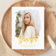 Trendy, moderno obrigado de graduação, você faz o cartão-postal com o dentro de fotografia do formando de um quadro texturizado com "Obrigados!" em um roteiro manuscrito amarelo. Personalize a frente do obrigado de graduação que você faz no cartão-postal, adicionando o nome do formando e o ano de graduação. O cartão postal reverte para exibir seu endereço de devolução e mensagem personalizada.