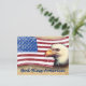 Bandeira americana com águia careca e dizendo: