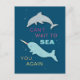 Espalhe alegria com esta mão desenhada a narbaleia arco-íris e o par de golfinhos. Envie este cartão postal adorável a um amigo para lembrá-los que você "não pode esperar para te MAR de novo!".