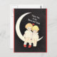 Amo-te ao cartão postal da Lua e do Back. Vintage boy e garota sobre a lua apaixonada, excelente de Dia de os namorados.