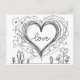 Cartão Postal Amor Coração com Linhas Desenhadas à Mão