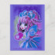 Fada amorosa fofa com cabelo magenta rosa, vestido e asas desfocados, segurando um grande coração.