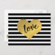 Cartão-Postal Personalizado "Amor": Design de Coração Metálico Faux Dourado Chic/Tipografia De "Amor"/Na moda Black E White Stripes Em Segundo Plano/Pode ser Personalizado Com Sua Própria Mensagem Especial