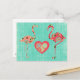 Cartões de amor Flamingo cor-de-rosa—flamingos cor-de-rosa retrorados num fundo verde angustiado.