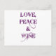 Cartão Postal Amor Peace Wine
