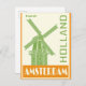 Qualquer um gostaria de receber este cartão postal de poster de viagens neerlandês, que contém uma ilustração retrógrada de um moinho de vento nos Países Baixos — Amesterdã, Holanda!