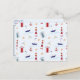 Cartão Postal Âncora Vermelha Moderna Barcos Azuis  Aniversário