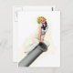 Imagem de pin-up de uma era clássica. Uma imagem divertida e sombria de uma pose retrorreflectora. Marinheiro feminino cavalgando a ponta de um canhão.