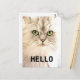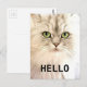 Angora Cat Hello Cartão-postal Mantenha-se em contato com cartões postais personalizados do Zazzle! Adicione a sua imagem favorita a um cartão postal de vazio ou diga "oi" com um design pré-existente. Salve papel e envie uma nota sem desperdiçar envelopes! 4,25" x 5,6" (retrato) ou 5,6" x 4,25" (paisagem). Impresso no estoque da placa de ultra-peso (120 lb.) com acabamento de brilho. Sem ordem mínima. Obtenha selos personalizados para combinar! A taxa de postais de um cartão postal é de $0,34