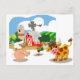 Quintal com animais bonitos de desenho animado: um porco, ovelha, galo e boi.