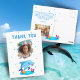 Cartaz De Foto Do Aniversário De Animais Do Mar De Golfinho Bonitos. Obrigado de aniversário bonito de golfinhos que você faz cartão postal para seus amigos e família. Carregue suas fotos na frente e na parte traseira do cartão e personalize o cartão com seu nome e texto na parte traseira. O cartão tem golfinhos bonitos de desenho animado. Excelente como cartões de agradecimentos para meninas ou meninos.