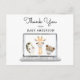 Obrigado seus convidados por comemorar a mamãe! Este obrigado que você faz no cartão-postal apresenta animais distanciantes sociais vestindo máscaras em uma tela de computador. Personalize com suas informações ou clique em "Clique para personalizar mais" para editar estilos de fonte, tamanho e cores.