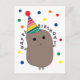 Um design de batata original neste cartão postal de aniversário. Uma batata engraçada vestindo uma festa cercada por um confete colorido. Uma maneira divertida de enviar uma saudação de aniversário durante estes tempos de distanciamento social.
