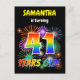 A frente deste design postal de convite de aniversário vibrante e divertido apresenta um nome personalizável, um emocionante padrão inspirado em fogos de artifício celebratórios, e a mensagem "41 ANOS DE IDADE!" tendo um espectro colorido de arco-íris, inspirou um padrão de gradação. O verso apresenta uma mensagem personalizável que pode descrever quando e onde a parte está sendo mantida, além de outras informações relevantes. Cartões-postais como este podem ser enviados a potenciais participantes de uma festa de aniversário que está a ser realizada para celebrar o quarenta primeiro aniversário de alguém. [~Z0000452]
