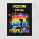 A frente desta design de cartão postal divertida e animada convite de aniversário tem um nome editável, um emocionante padrão inspirado em fogos de artifício celebratórios, e a mensagem "51 ANOS DE IDADE!" ter um espectro colorido do arco-íris inspirou um padrão de gradação. A parte traseira apresenta uma mensagem personalizável com informações sobre a parte, como quando e onde ela está sendo mantida. Cartões-postais como este podem ser enviados a potenciais convidados de uma festa de aniversário que se realiza em comemoração dos cinquenta anos de alguém. [~Z0000452]