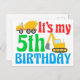 Cartão Postal Aniversário de 5 anos de menino com veículo de con