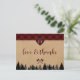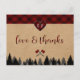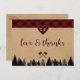Design de cartão único com xadrez de búfalo vermelha, silhueta florestal, um coração de xadrez de búfalo vermelho para monograma, machados, belo script do PARTIDO LUMBERJACK & JILL com efeito de xadrez vermelha. Use a ferramenta Personalizar para adicionar suas informações. Por favor, visite meu Lumberjack e Jill Party.
