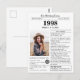 Deseje feliz aniversário com este cartão de aniversário único no estilo jornal, incluindo uma foto do destinatário e uma coleção de fatos divertidos e notícias do mundo de 1998. Seja criativo e crie um souvenir personalizado. Projetado para se assemelhar a um jornal vintage em estilo clássico preto e branco. Uma maneira fofa e divertida de celebrar os anos 90!