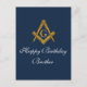 Cartão de aniversário da Marinha Azul, Franca-Maçonaria. Cartão postal de aniversário com esquadro e compasso maçônico. Por favor, personalize-o com seu próprio texto ou exclua-o e escreva suas próprias palavras à mão.