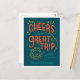 Parabéns por uma Ótima Viagem ao redor do Mundo Feliz Aniversário Citação de Letra Moderna em Azul Turquesa e Laranja.