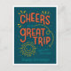 Parabéns por uma Ótima Viagem ao Redor do Mundo Feliz Aniversário Citação de Letreiro Moderno em Azul Turquesa e Laranja.