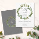 Apresentando uma elegante granja verde da floresta, este aniversário de casamento botânico, exceto o cartão de data, pode ser personalizado com suas informações especiais de aniversário de prata. O reverso apresenta uma garland floral correspondente que enquadra suas datas de aniversário em um texto branco elegante em um fundo prateado. Projetado por Thisnotme©