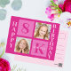 Cartão postal de aniversário feliz quadrado de 2 fotos para uma menina. Celebre o aniversário do seu filho com fotos fofas deles neste cartão postal com quadrados rosa bonito e adicione sua própria fotografia. Adicione o nome e a idade deles em rosa quente.